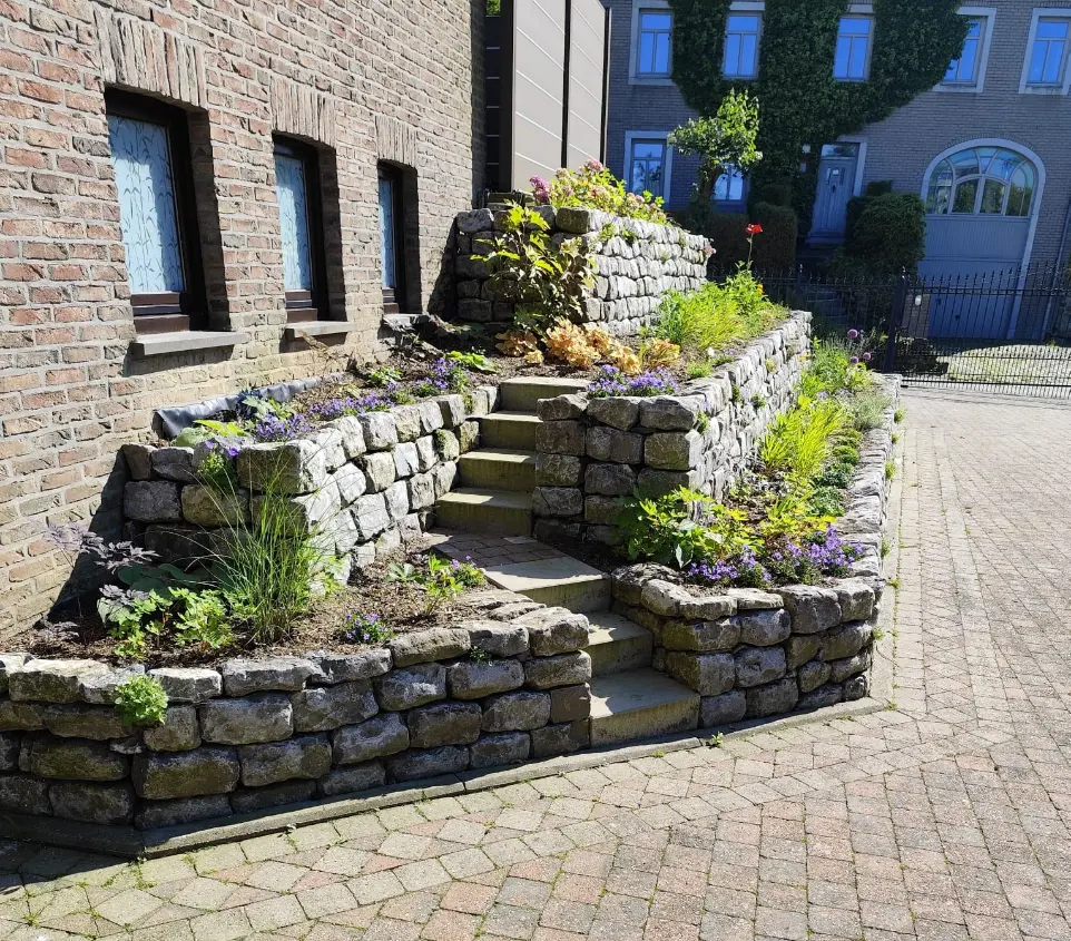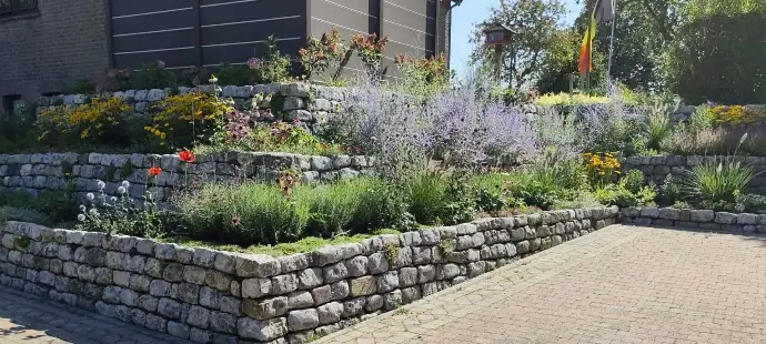 - Beete abstechen/ Beetkante bauen in Form von Randsteinen, Tockenmauer oder L-Steinen